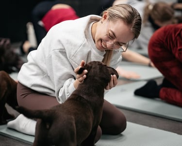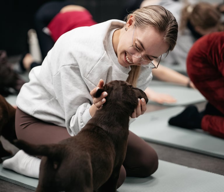 🧘♀️ Kokybiška joga – skiriame atskirą dėmesį ne tik bendravimui su šuniukais, bet ir kokybiškai jogos pamokai. Kiekvieną kartą Jūsų laukia vis kita pamokos forma. Išlaikoma tradicinė jogos seka: kvėpavimo pratimai, asanos ir meditacija.